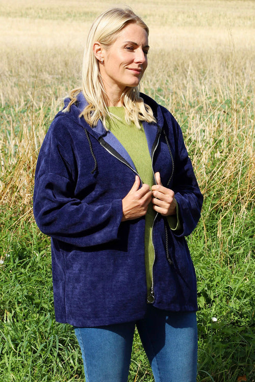 Verys Cord Zip Hooded Jacket Navy