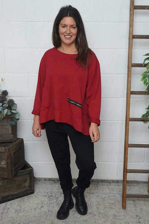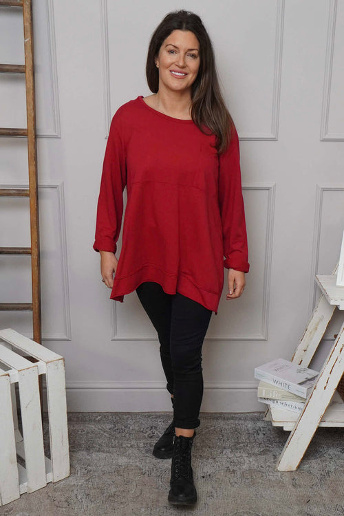 New InMade in Italy Made in ItalyElnora Pocket Cotton Top Red