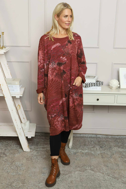 New InAvailable to Pre-OrderMade in Italy Made in ItalyOwena Print Cotton Dress Wine