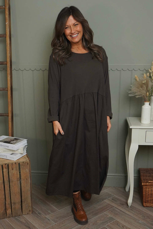 • Tina Ribbed Detail Cotton Dress Cocoa