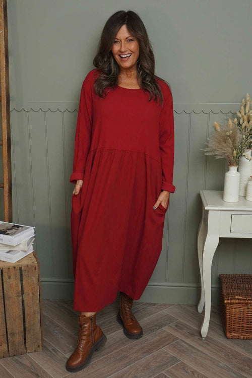 • Tina Ribbed Detail Cotton Dress Burgundy