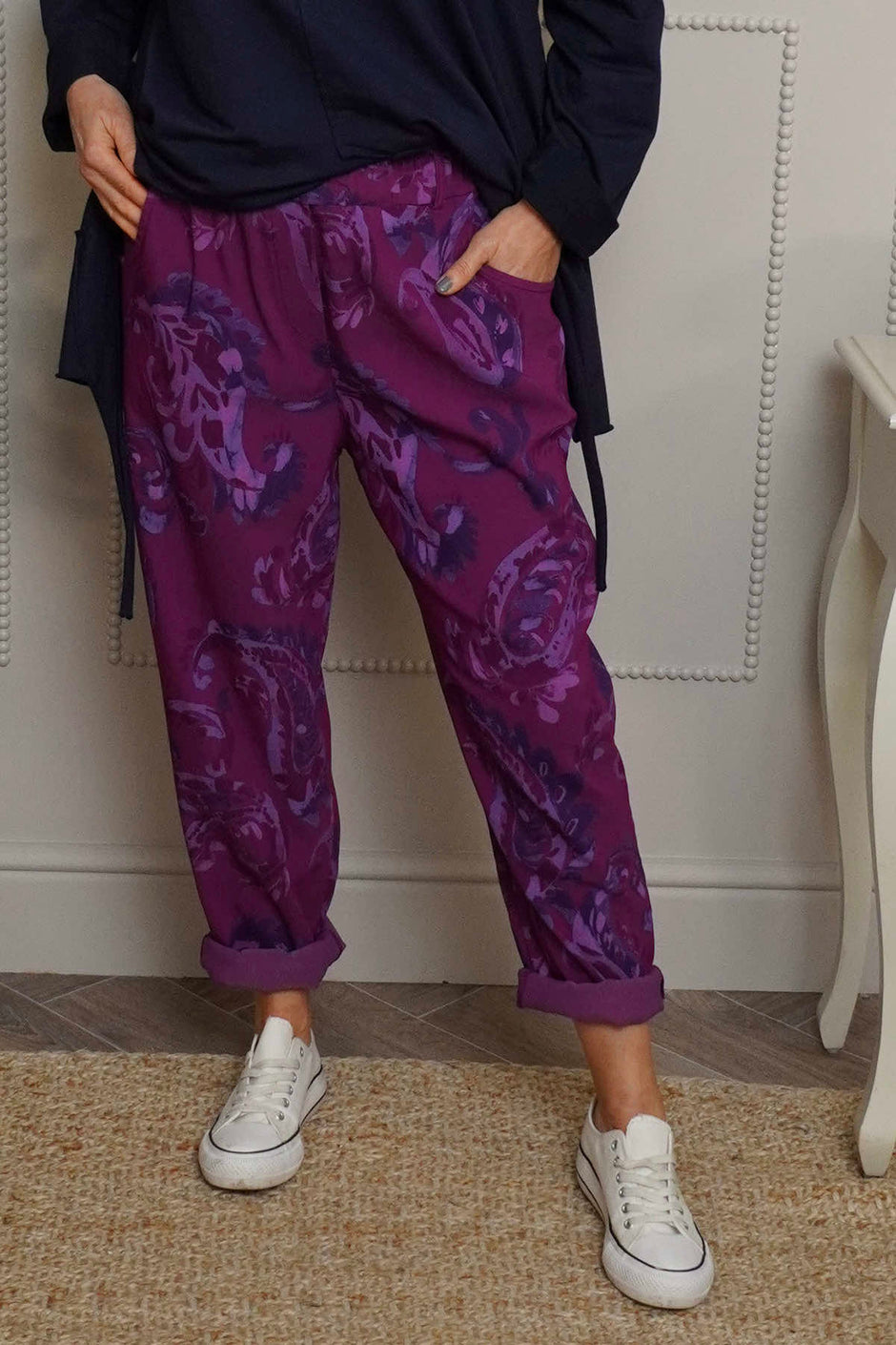 Lilah Print Cotton Trousers Mocha