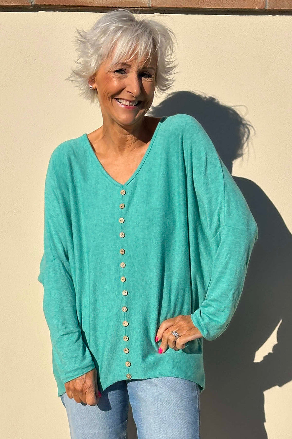 Blythe Button Detail Top Aqua