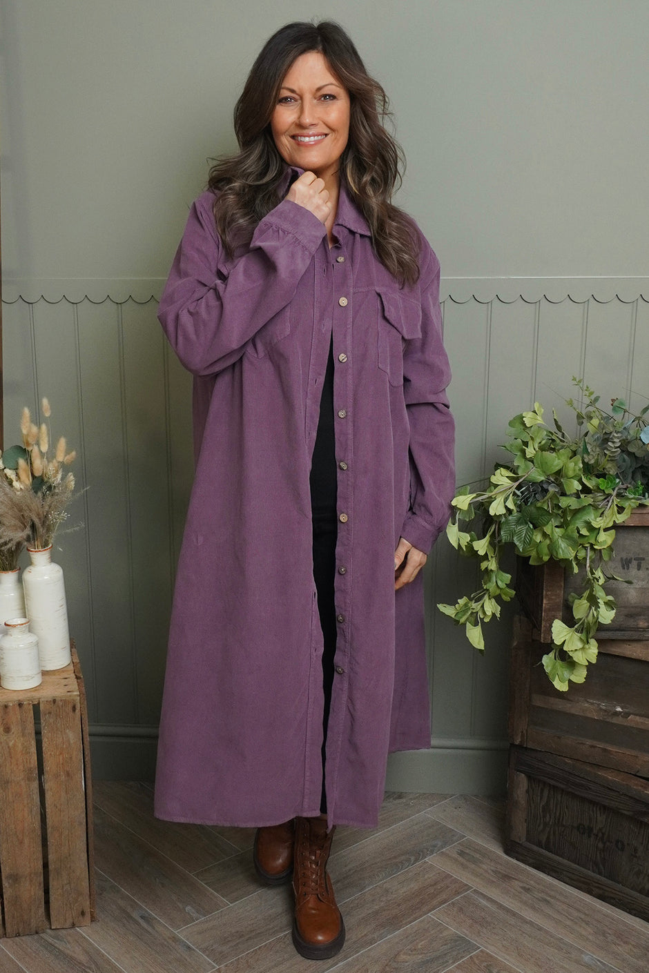 Dezi Needlecord Shirt Dress Mauve