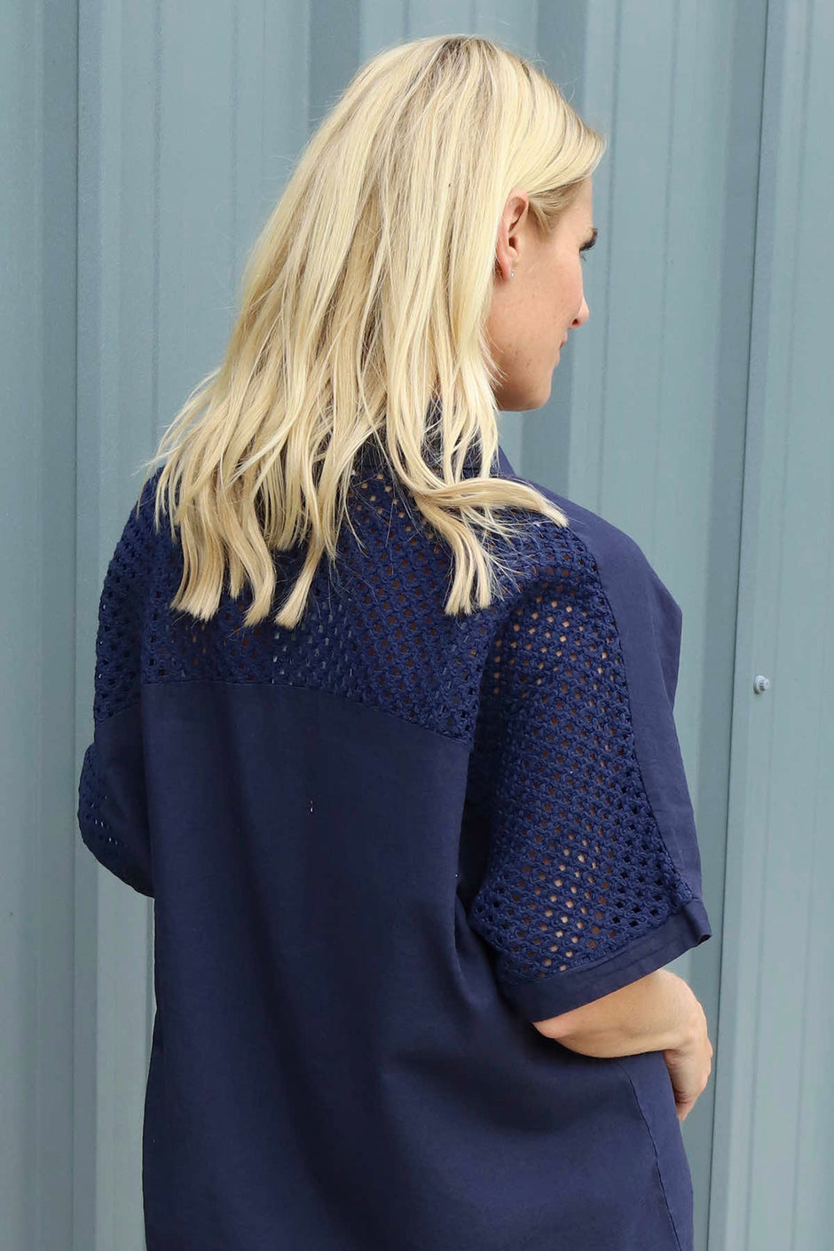 Theodora Crochet Detail Shirt Navy