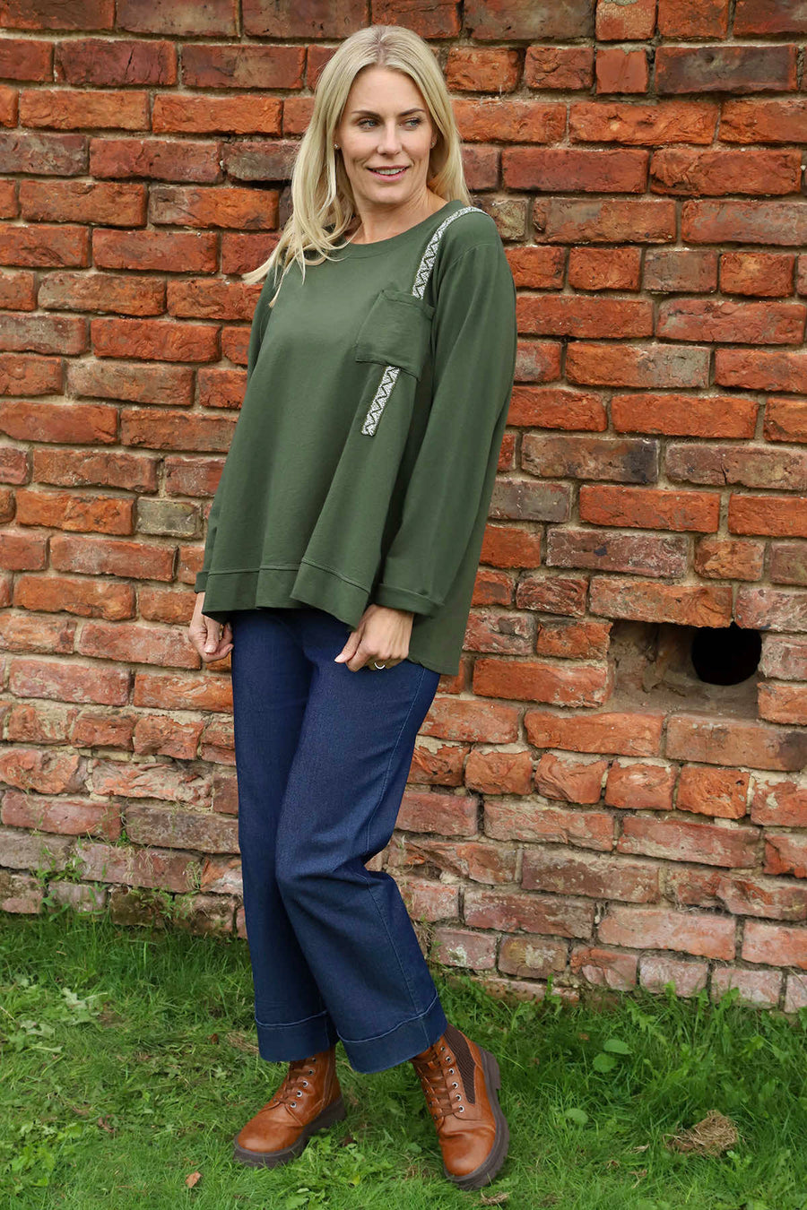 Barbara Pocket Cotton Top Khaki