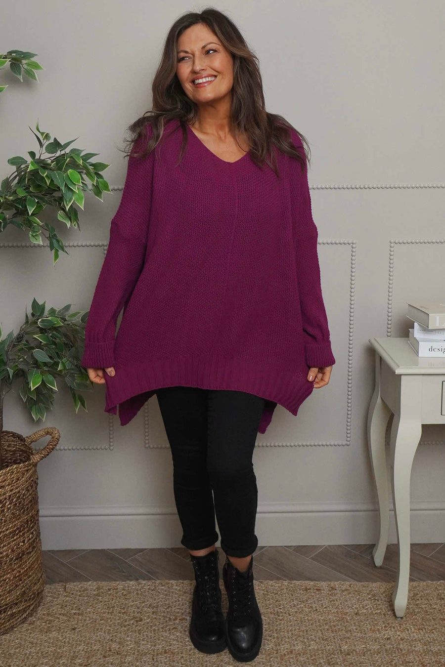 Introducing the Bo Slouch V-Neck Jumper  - the essential knit for any wardrobe. This versatile jumper features a flattering v neck and stylish dipped hemline. Upgrade your style game with this must-have piece from Kit and Kaboodal.