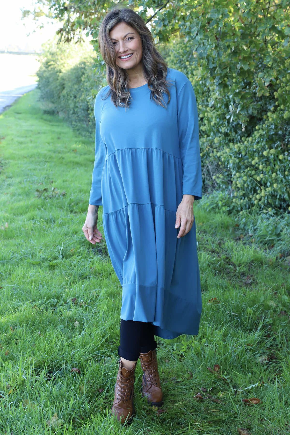 Callady Tiered Cotton Dress Teal Teal - Callady Tiered Cotton Dress Teal Teal