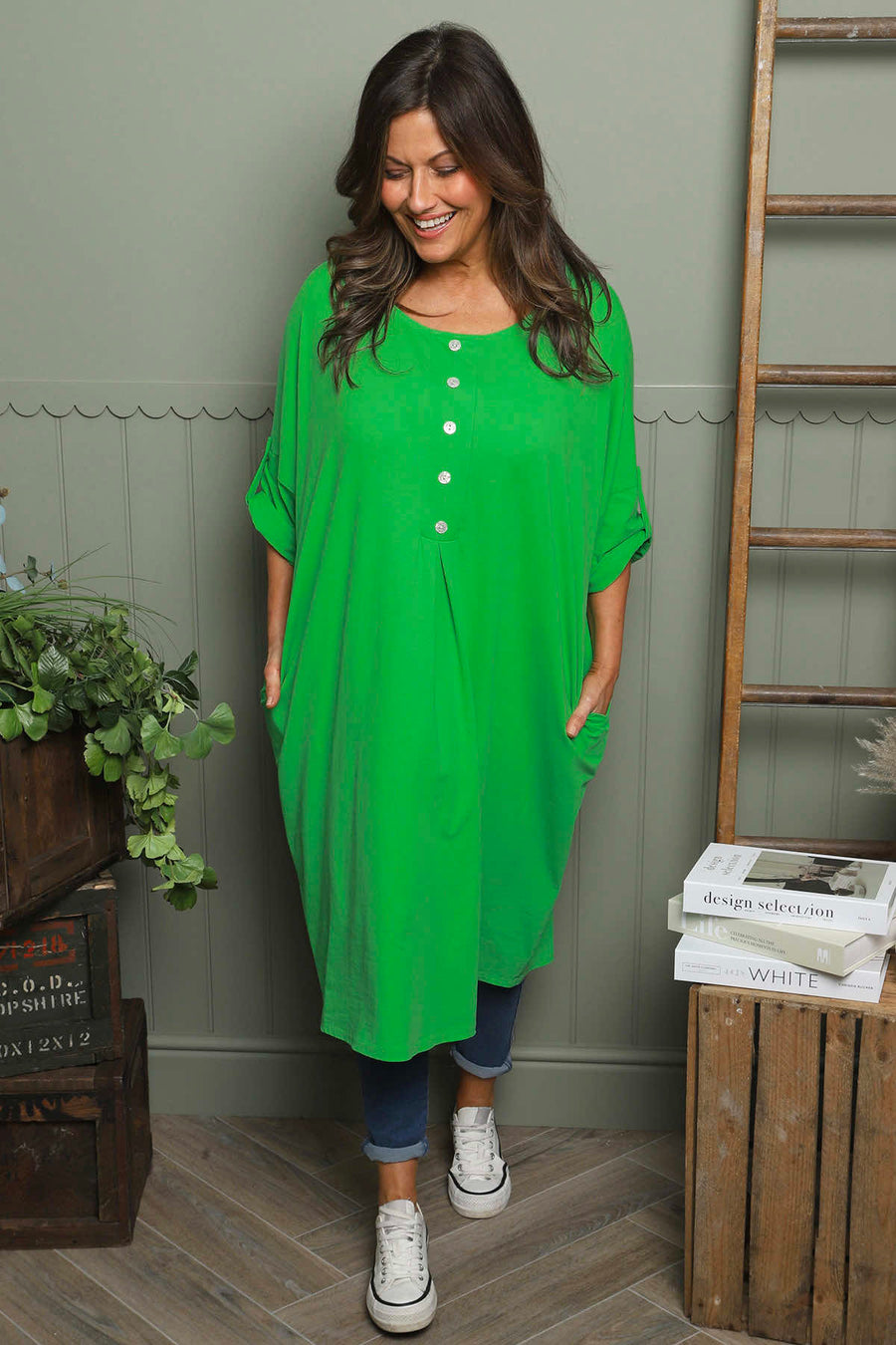 The Claire Cotton Dress combines everyday comfort with thoughtful design details. Crafted from soft cotton, this dress features a classic round neckline and charming button detailing down the front. Practical side pockets offer convenient storage for your essentials, making it perfect for casual outings or relaxed days at home. A versatile wardrobe staple that feels as good as it looks.