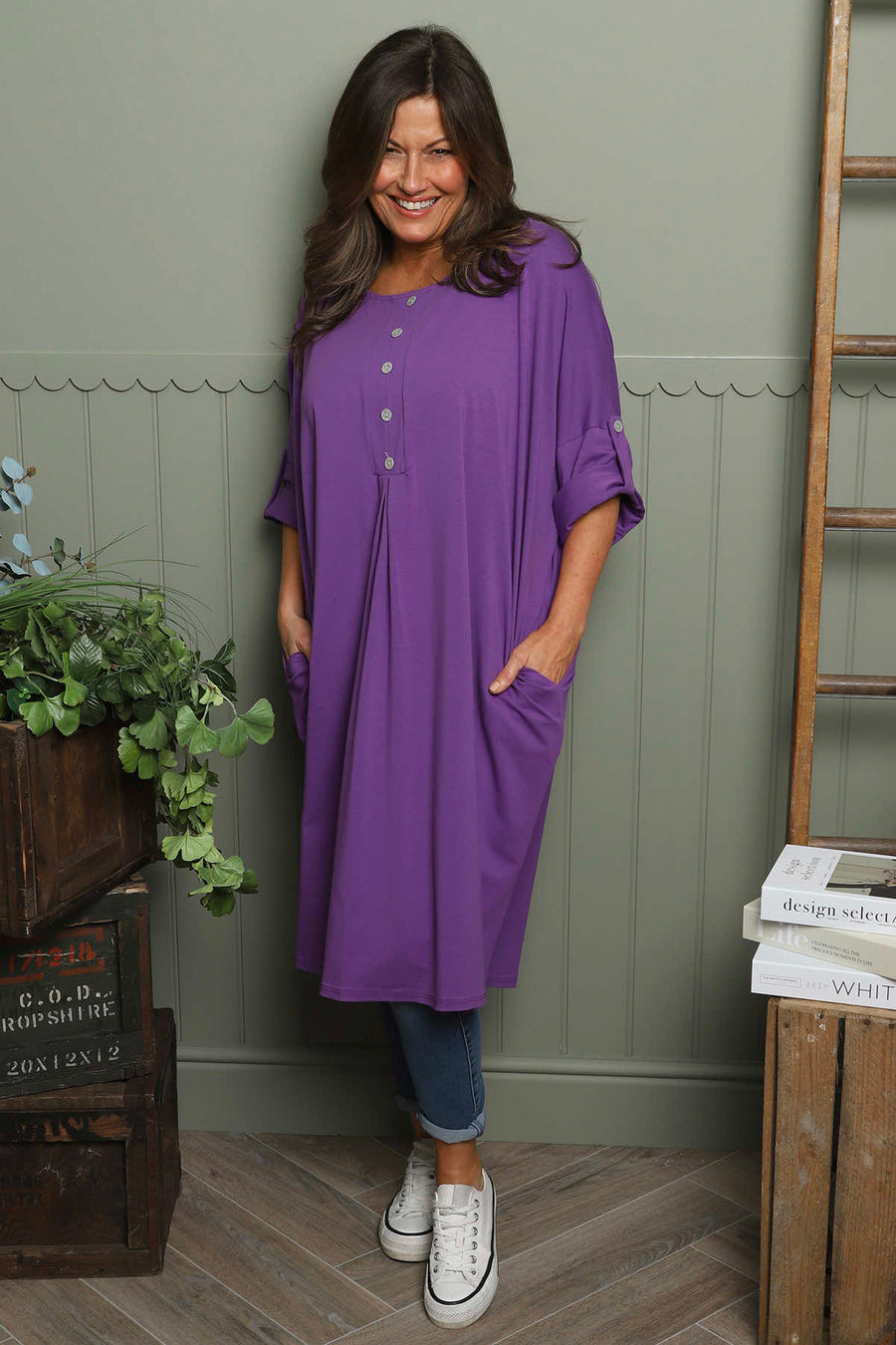 The Claire Cotton Dress combines everyday comfort with thoughtful design details. Crafted from soft cotton, this dress features a classic round neckline and charming button detailing down the front. Practical side pockets offer convenient storage for your essentials, making it perfect for casual outings or relaxed days at home. A versatile wardrobe staple that feels as good as it looks.