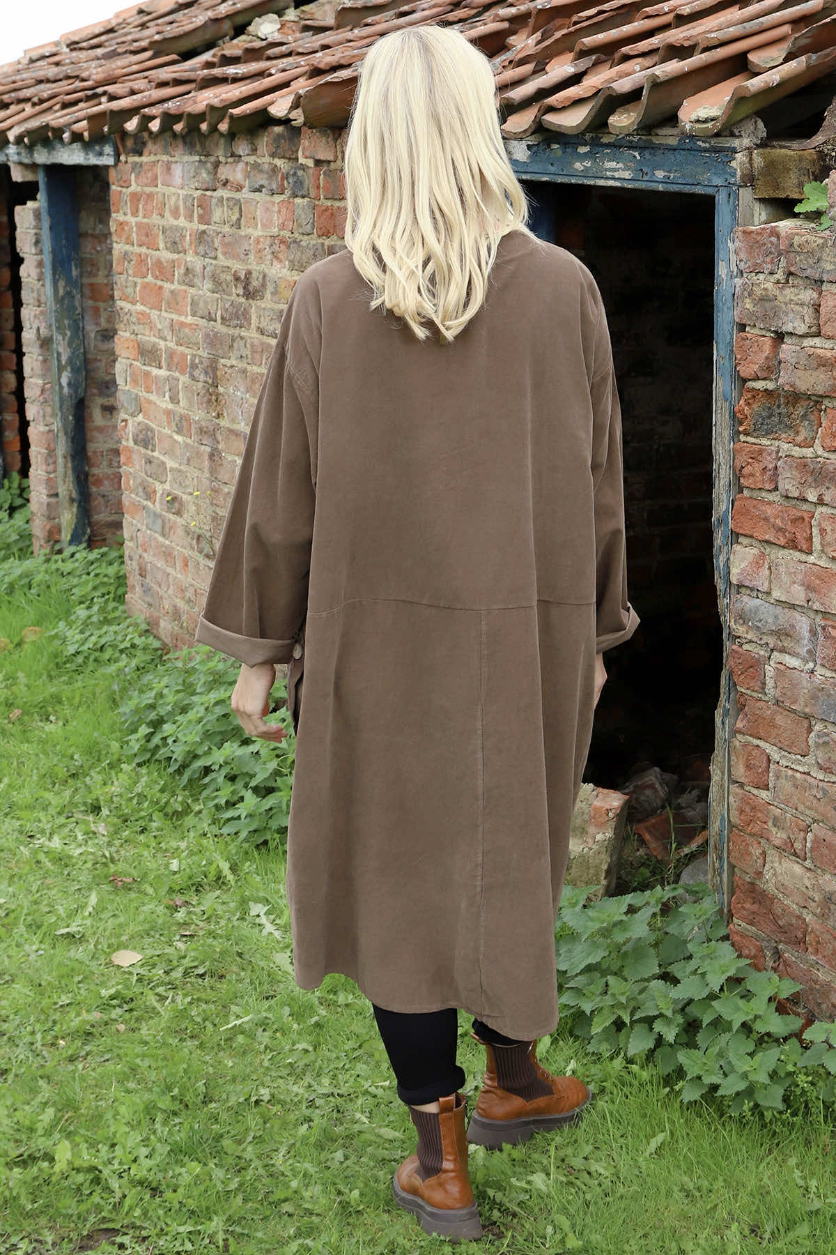 Esther Button Detail Needlecord Dress Cocoa