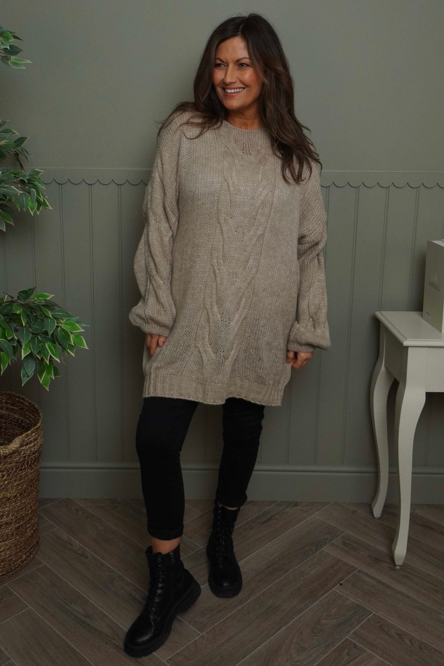 Stay warm with the Layne Knitted Jumper, a timeless essential designed for comfort and style. Crafted from a cosy knit fabric, this jumper features a classic round neckline and distinctive cable detailing that adds visual interest to your everyday wardrobe. The elasticated cuffs provide a secure, flattering fit while keeping warmth locked in. Perfect for layering or wearing solo, this versatile piece transitions effortlessly from casual days to relaxed evenings. An investment in comfort that you'll reach for season after season.