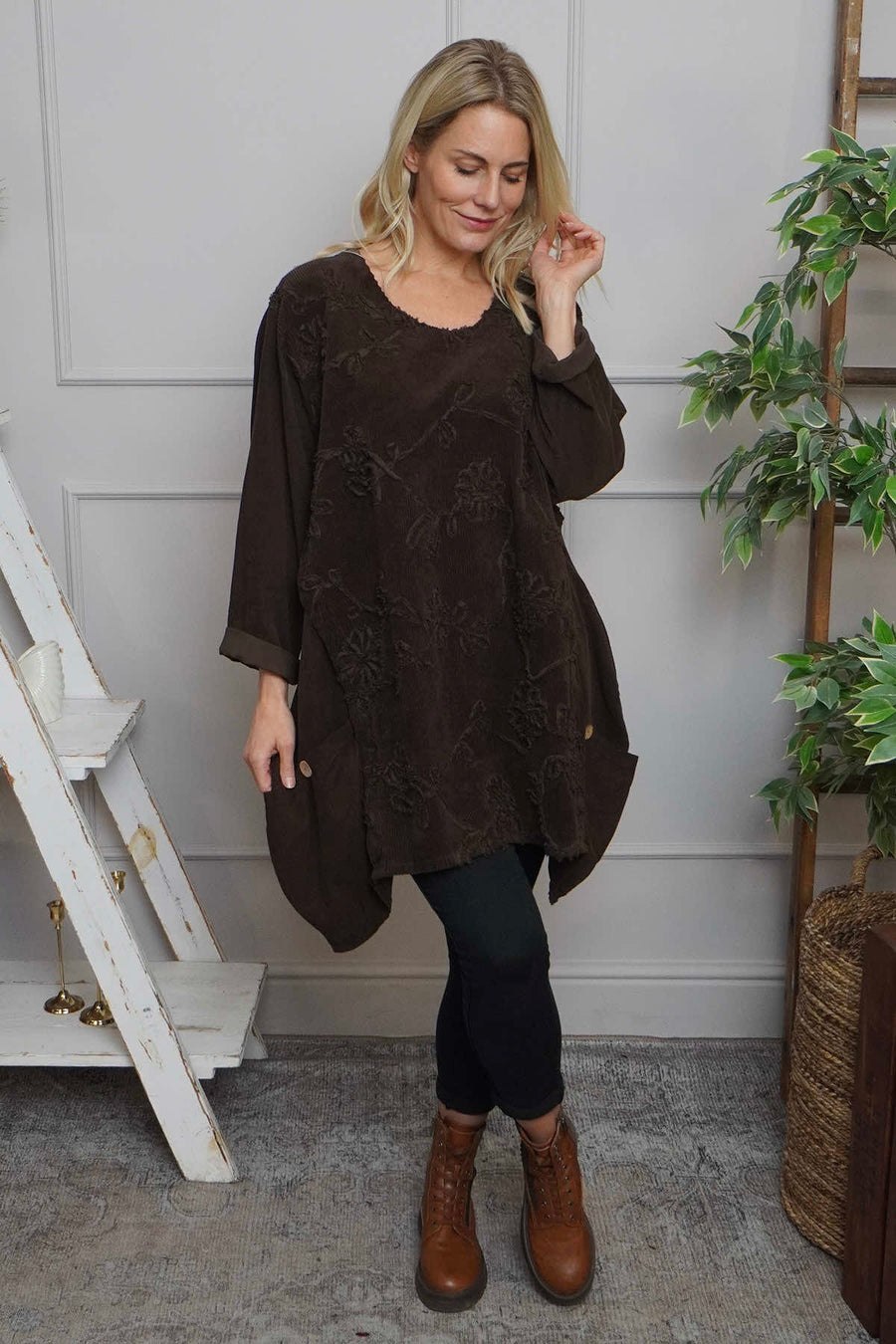 The Rita Cord Detail Tunic brings contemporary style to your everyday wardrobe. Crafted from soft needlecord fabric, this piece features distinctive cord detailing along the front with textured accents that add visual interest and dimension. Long sleeves provide versatile layering options, while the classic round neckline flatters all shapes. Practical button-fastening pockets keep your essentials close at hand. Whether dressed up or down, this tunic effortlessly transitions from season to season, making it a reliable choice for those who value both comfort and modern design.