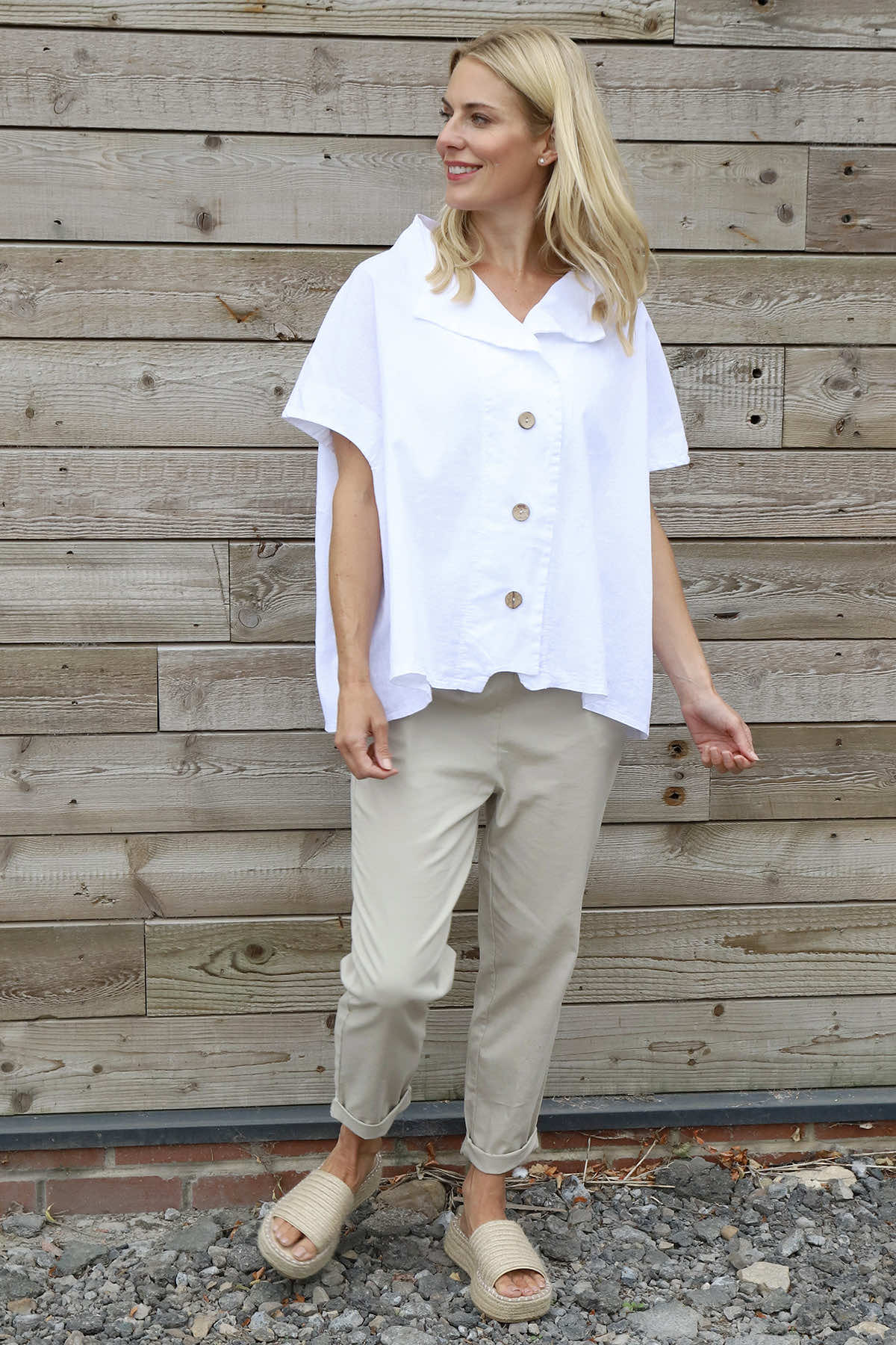 Meet the versatile Sabella Linen Shirt. The Sabella Linen Shirt combines the breathable comfort of linen with the softness of cotton, making it perfect for warmer days. Featuring a button opening and stylish cap sleeves, this Shirt offers an easy-to-wear, flattering fit that supports your natural shape. Ideal for layering, it adds a touch of effortless elegance to any outfit while keeping you comfortable throughout the day.