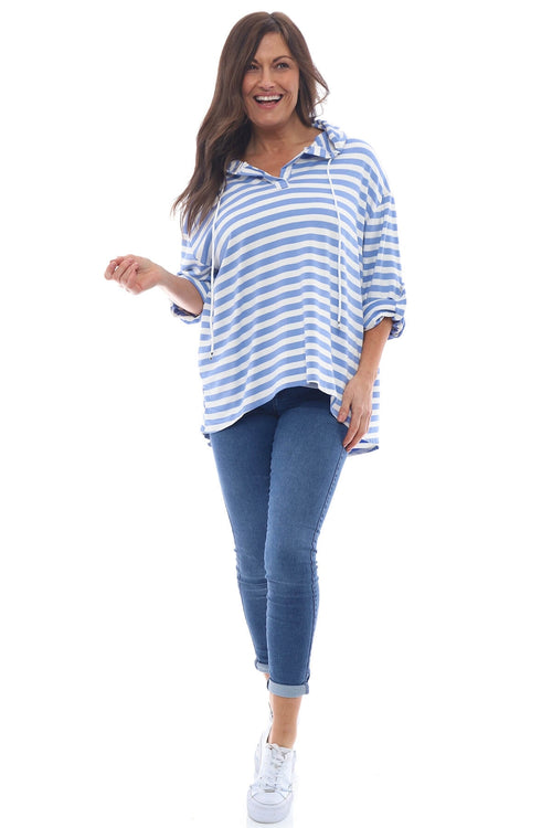 Sade Stripe Hooded Cotton Top Powder Blue