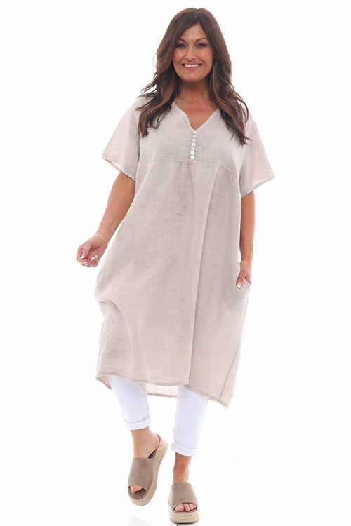 Salerno Button Detail Linen Dress Stone