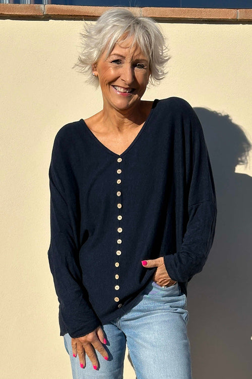 Blythe Button Detail Top Navy