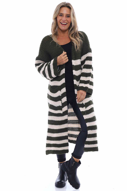 Orietta Stripe Knitted Cardigan Khaki