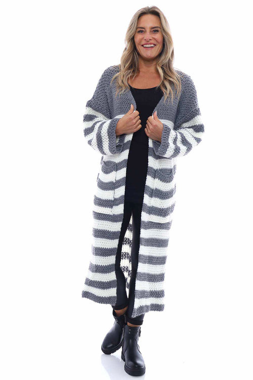 Kennedy Stripe Knitted Cardigan Mid Grey