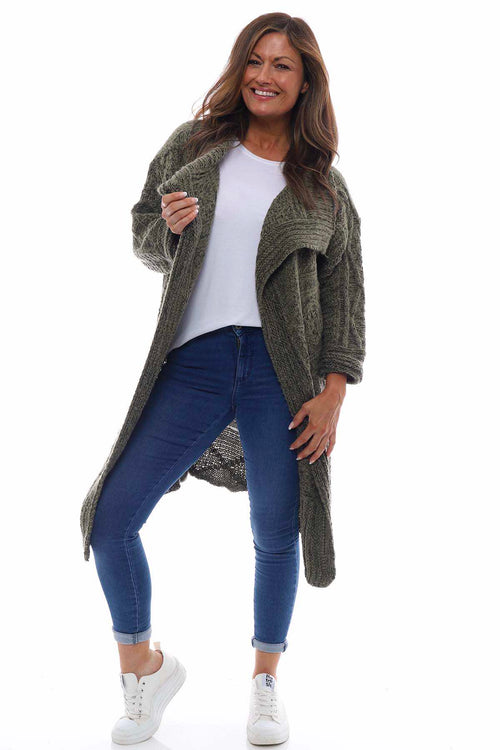 Nousha Hooded Knitted Cardigan Khaki
