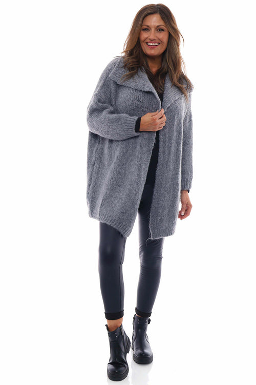 Nousha Hooded Knitted Cardigan Mid Grey