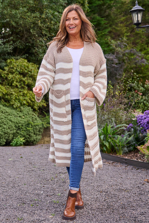 Kennedy Stripe Knitted Cardigan Cocoa