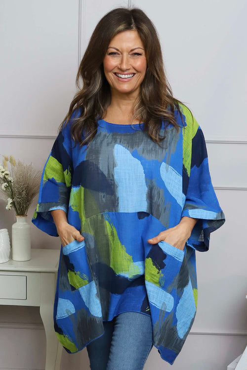 Angela Print Pocket Cotton Top Cobalt