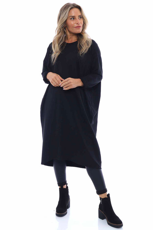 New InSelling FastMade in Italy Made in ItalyTina Ribbed Detail Cotton Dress Black