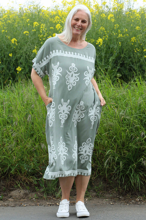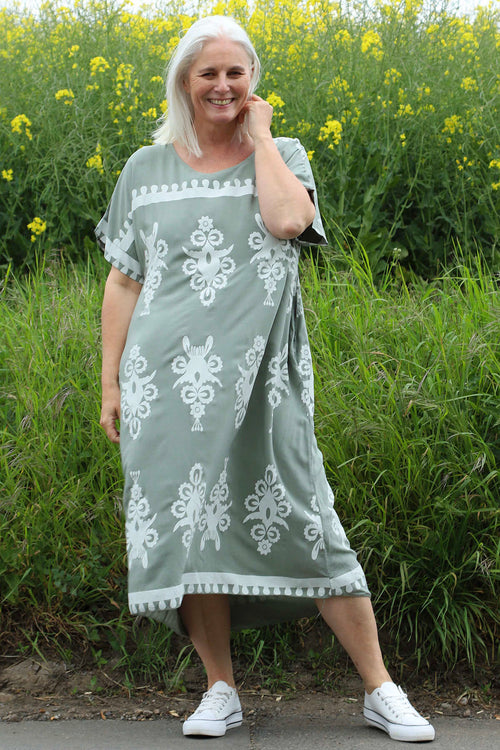 Tina Ribbed Detail Cotton Dress Khaki