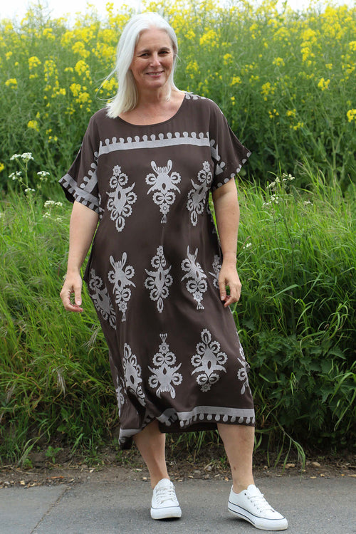 Tina Ribbed Detail Cotton Dress Cocoa