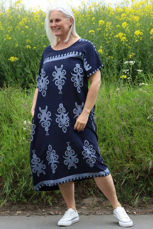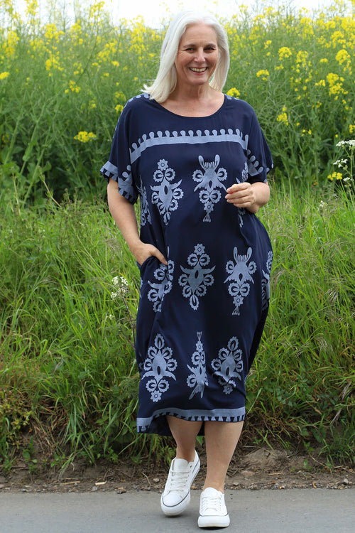 Tina Ribbed Detail Cotton Dress Navy