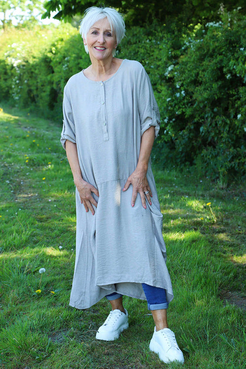 Tina Ribbed Detail Cotton Dress Stone