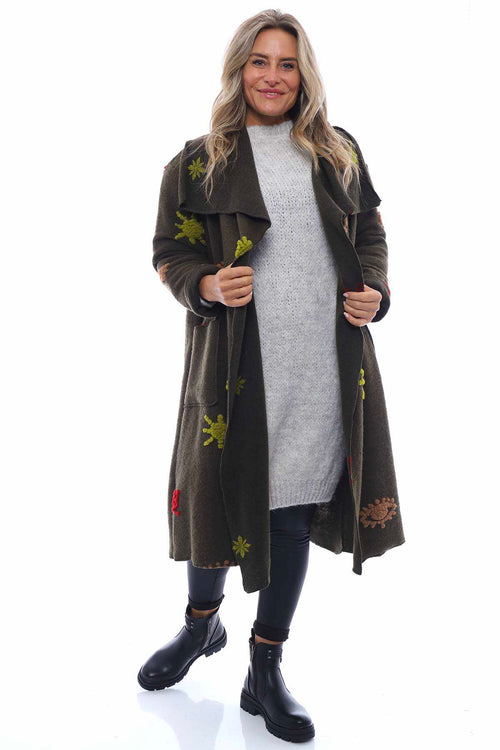 Olympia Embroidered Pattern Wool Jacket Khaki