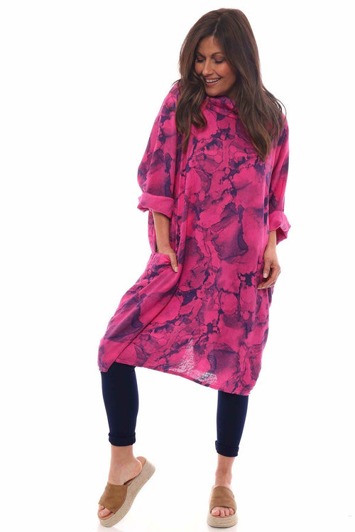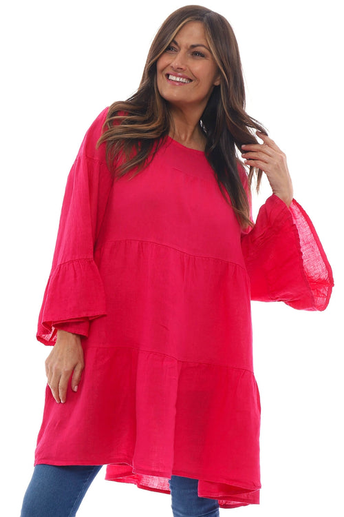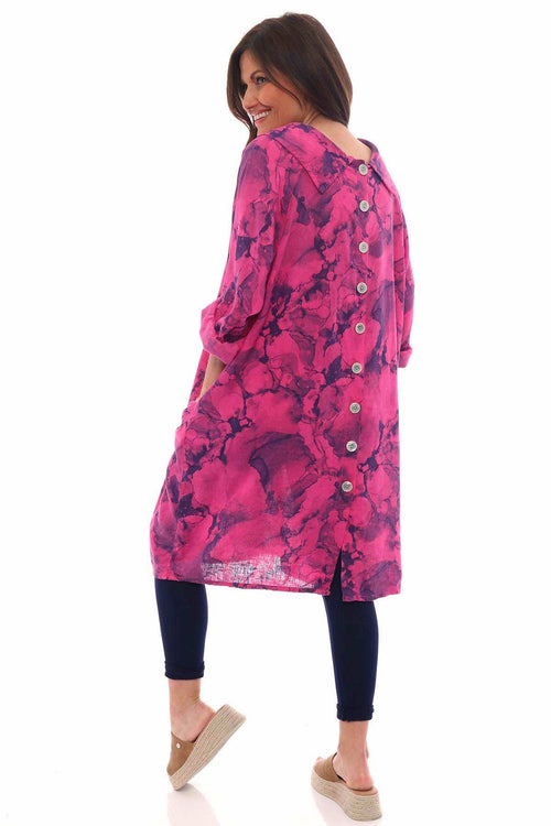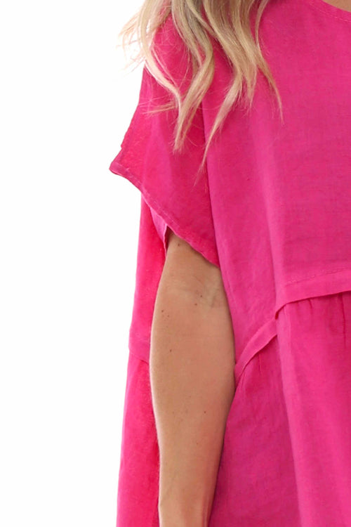 Nulvi V-Neck Linen Top Fuchsia