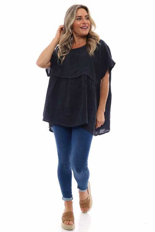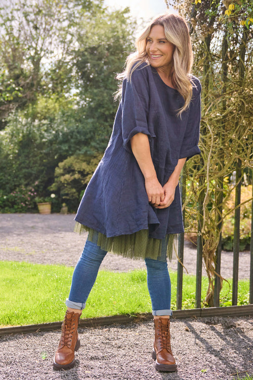 Isolde Linen Top Navy