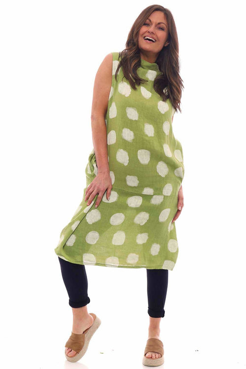 Nulvi V-Neck Linen Top Olive