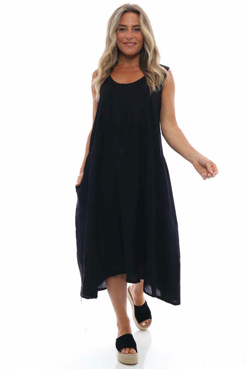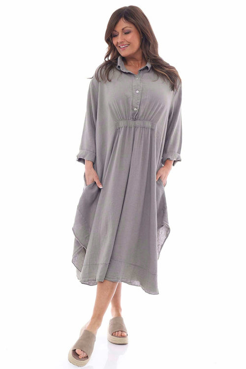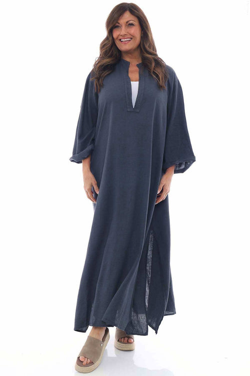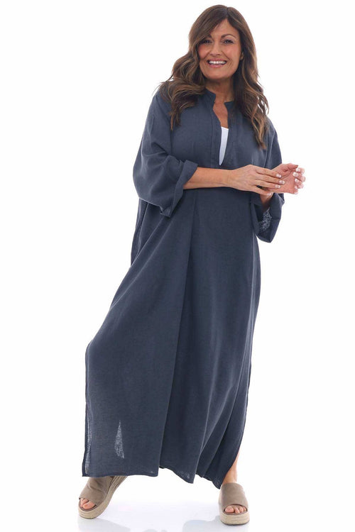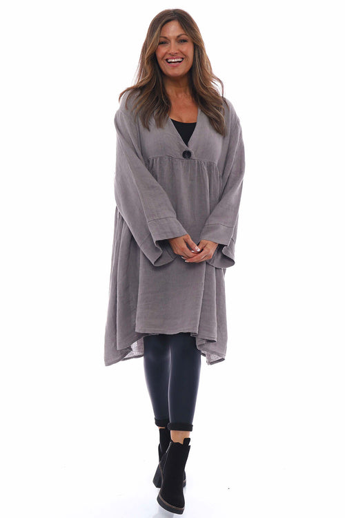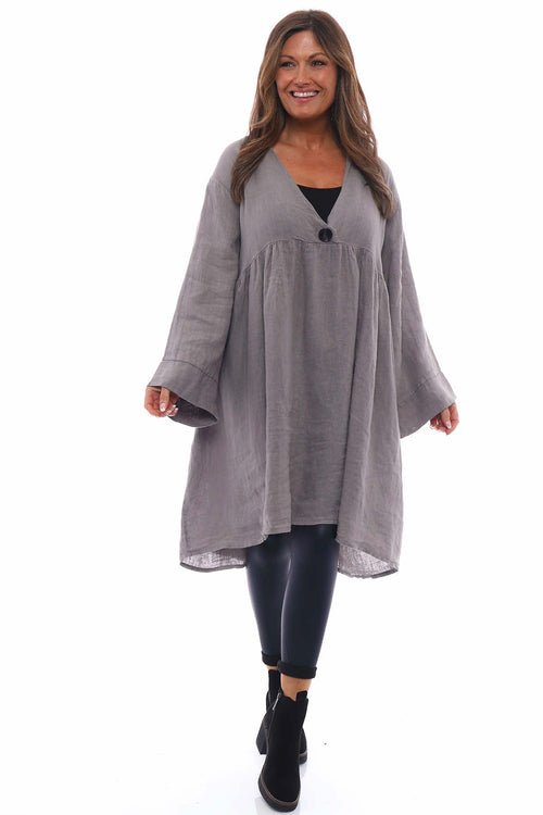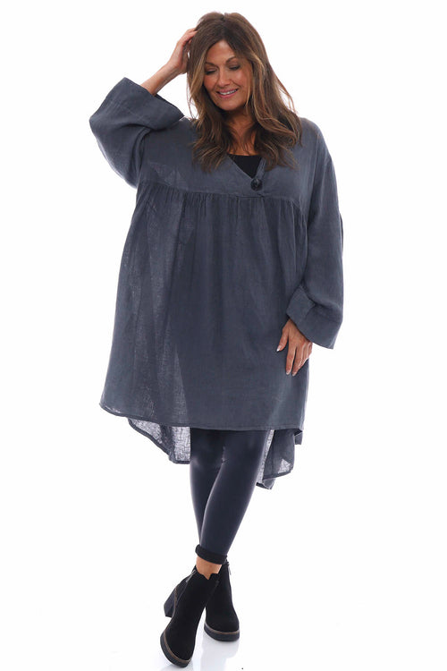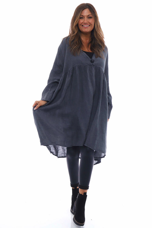 Adina Linen Pinafore Dress Charcoal