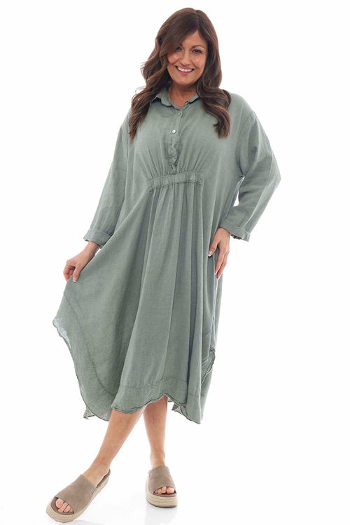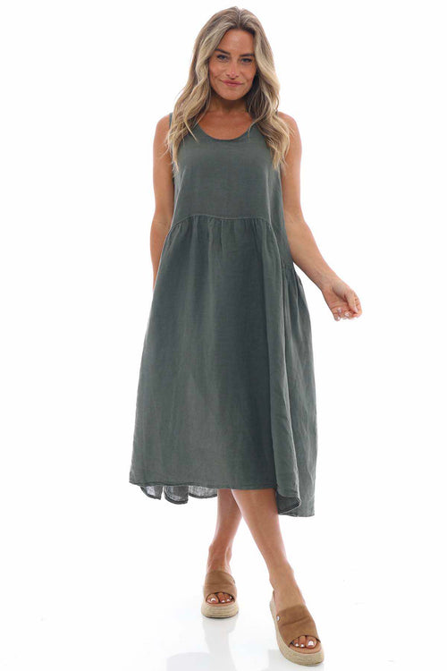 Adina Linen Pinafore Dress Olive