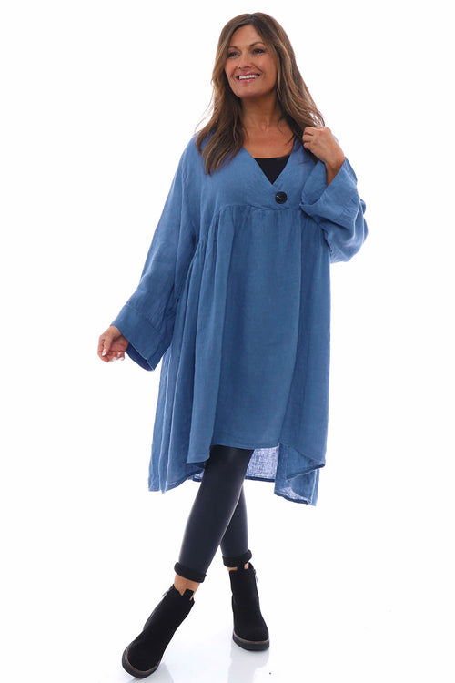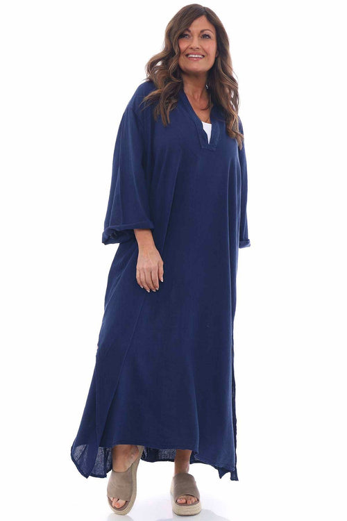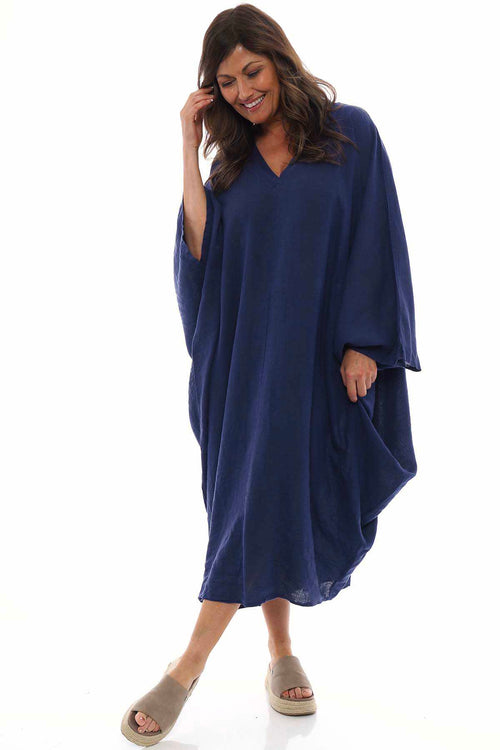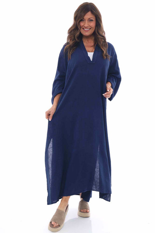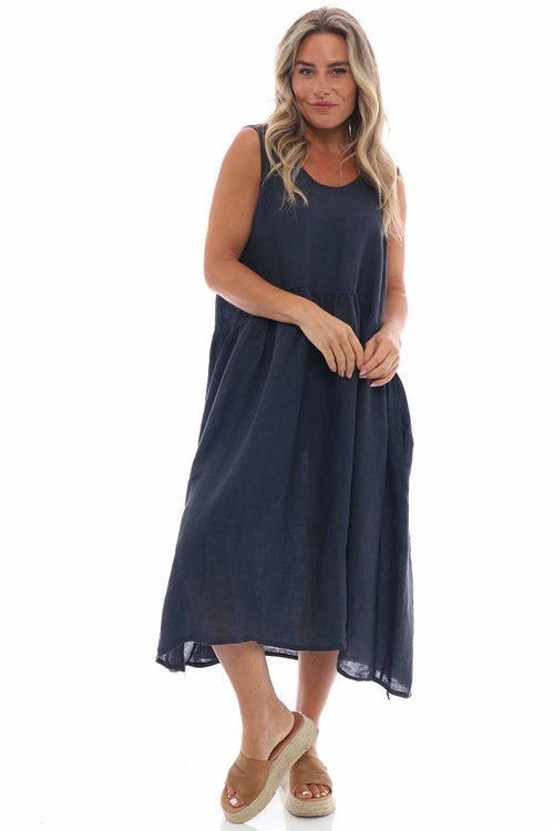 Adina Linen Pinafore Dress Navy