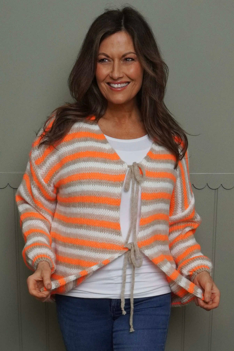 Merlyn Stripe Tie Knitted Cardigan Orange