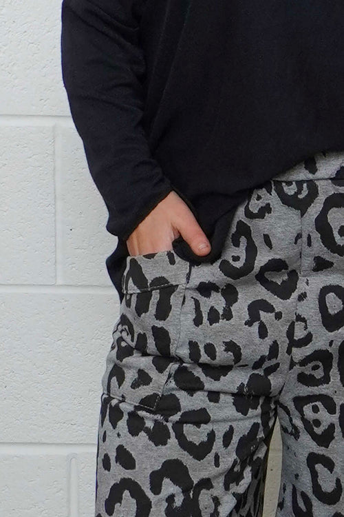 New InAvailable to Pre-OrderMade in Italy Made in ItalyNerissa Leopard Cotton Trousers Mid Grey