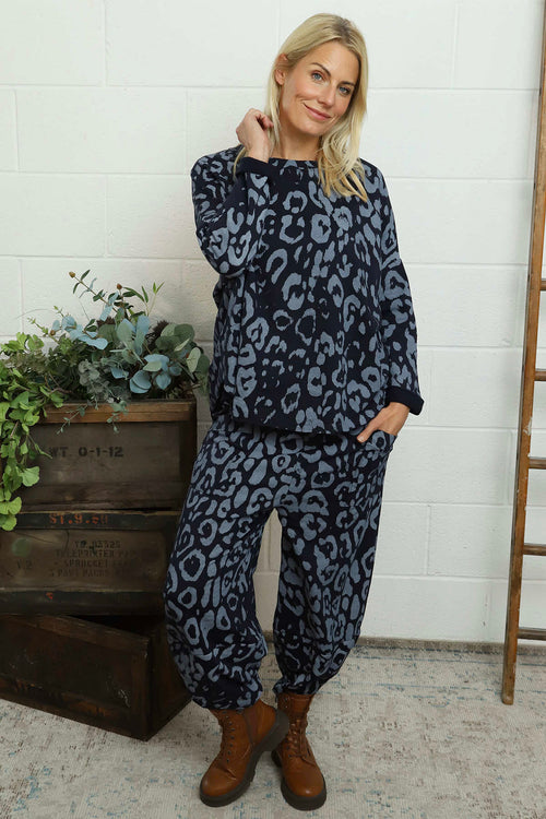 New InAvailable to Pre-OrderMade in Italy Made in ItalyNerissa Leopard Cotton Trousers Navy