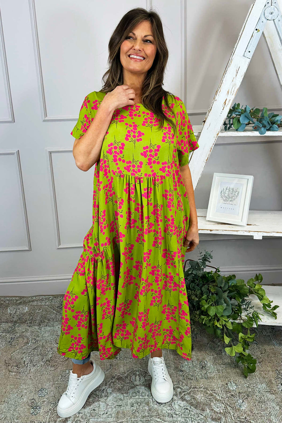 Romia Blossom Print Dress Olive