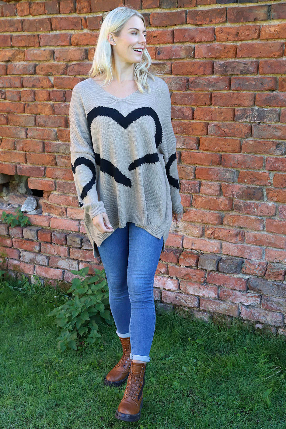 Roxanna Heart Knitted Jumper Khaki