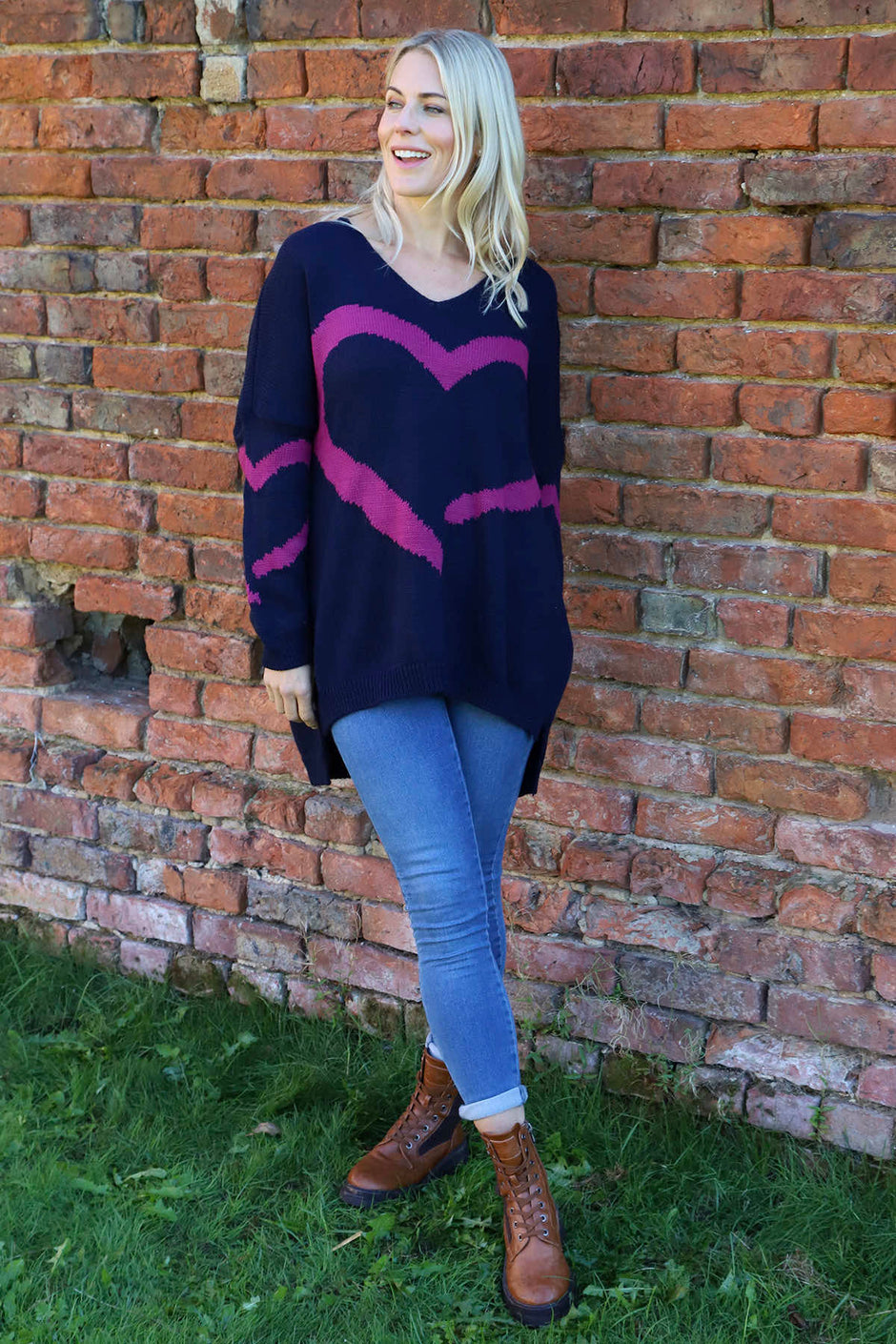 Roxanna Heart Knitted Jumper Navy