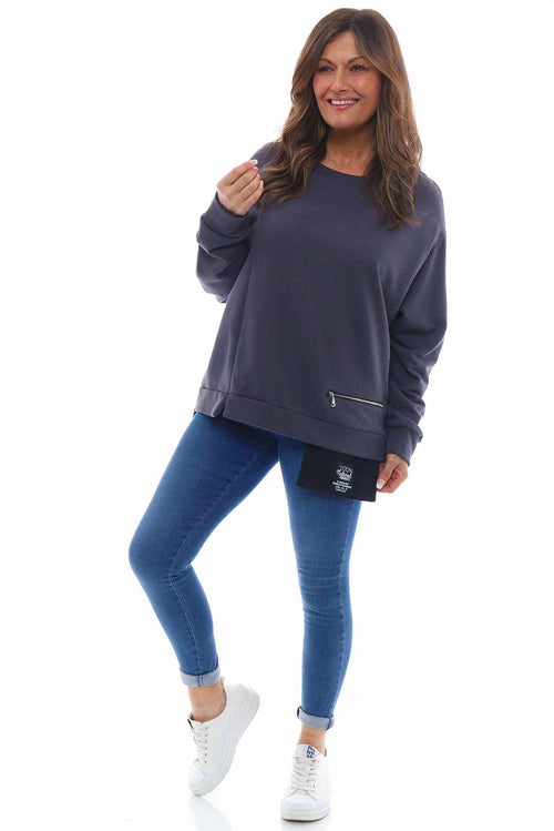 Sybil Button Cotton Sweatshirt Charcoal