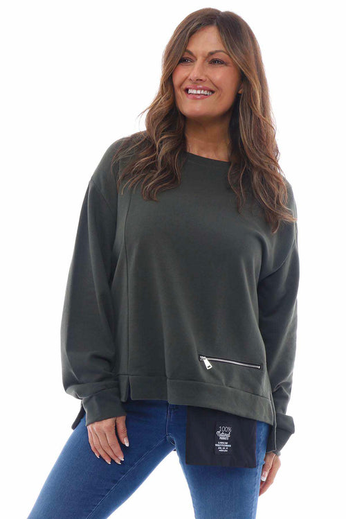 Sybil Button Cotton Sweatshirt Khaki