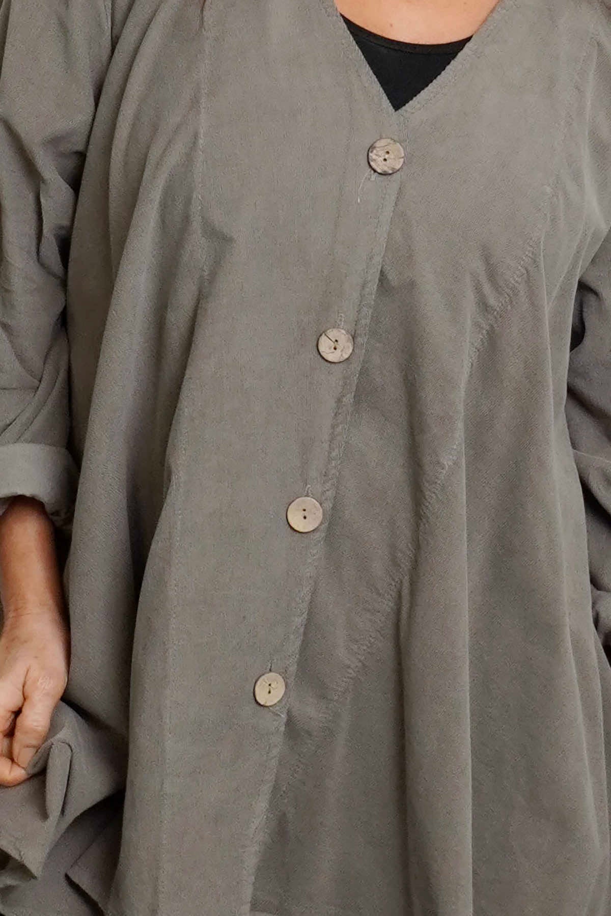 Upgrade your wardrobe with the Anika Needlecord Jacket. Made from fine cord cotton, this jacket features a flattering v neckline, full length sleeves, and a chic a-line style. The wooden button fastening adds a stylish touch to any outfit. Experience comfort and fashion in one with this jacket.