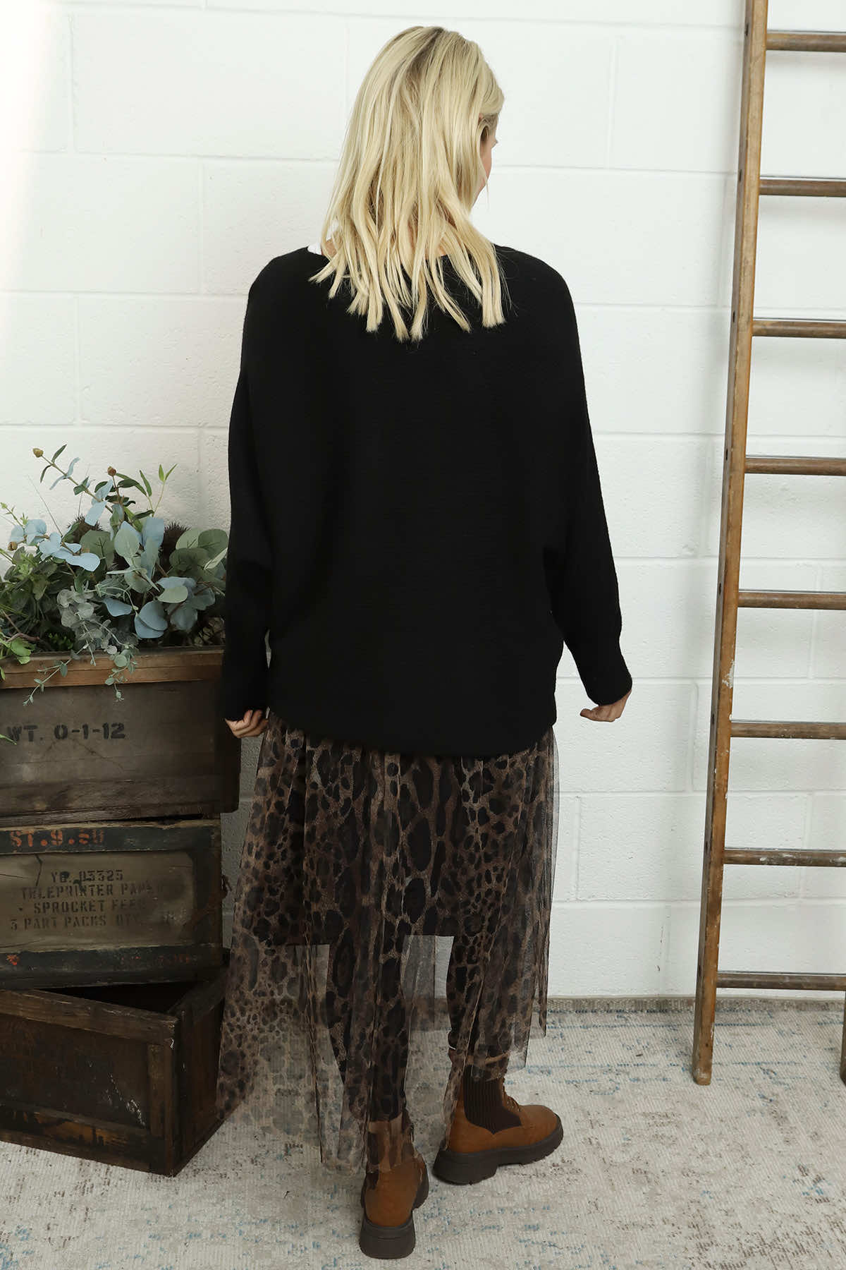 Dress to impress with the Danna Co-Ord. The dress combining an animal print skirt with an elasticated waist, round neckline, and sleeveless design for effortless style and comfort. Paired with a relaxed-fit jumper made from soft knit and long sleeves, this set offers cosy warmth while keeping you chic. Perfect for layering and versatile wear, it supports you through every occasion with ease.