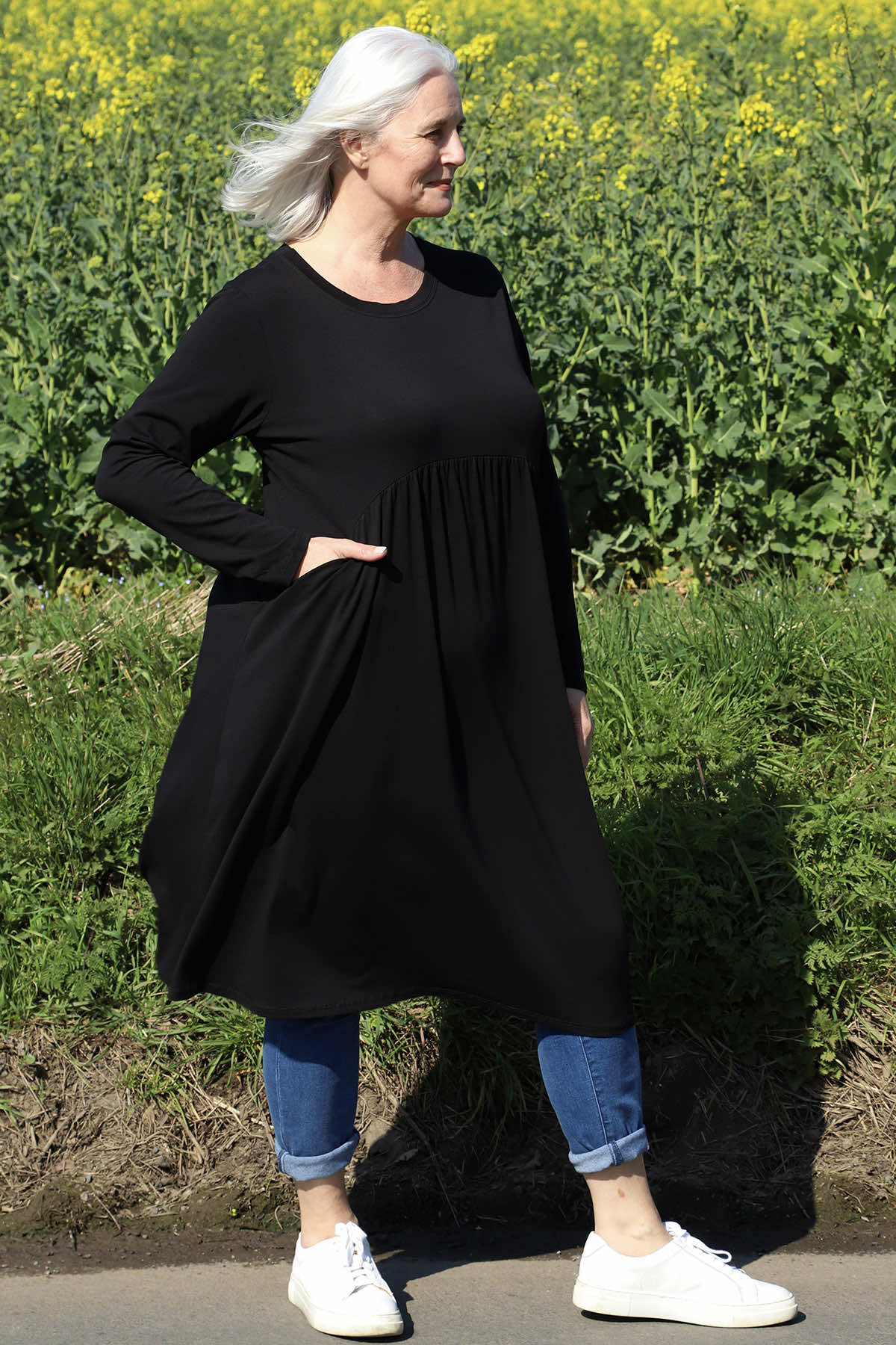 Effortlessly dress up with our Joanna Cotton Dress. Designed with a round neckline, full length sleeves, and pockets, this versatile piece is perfect for everyday wear and more. Enjoy a stylish and comfortable look all day long.